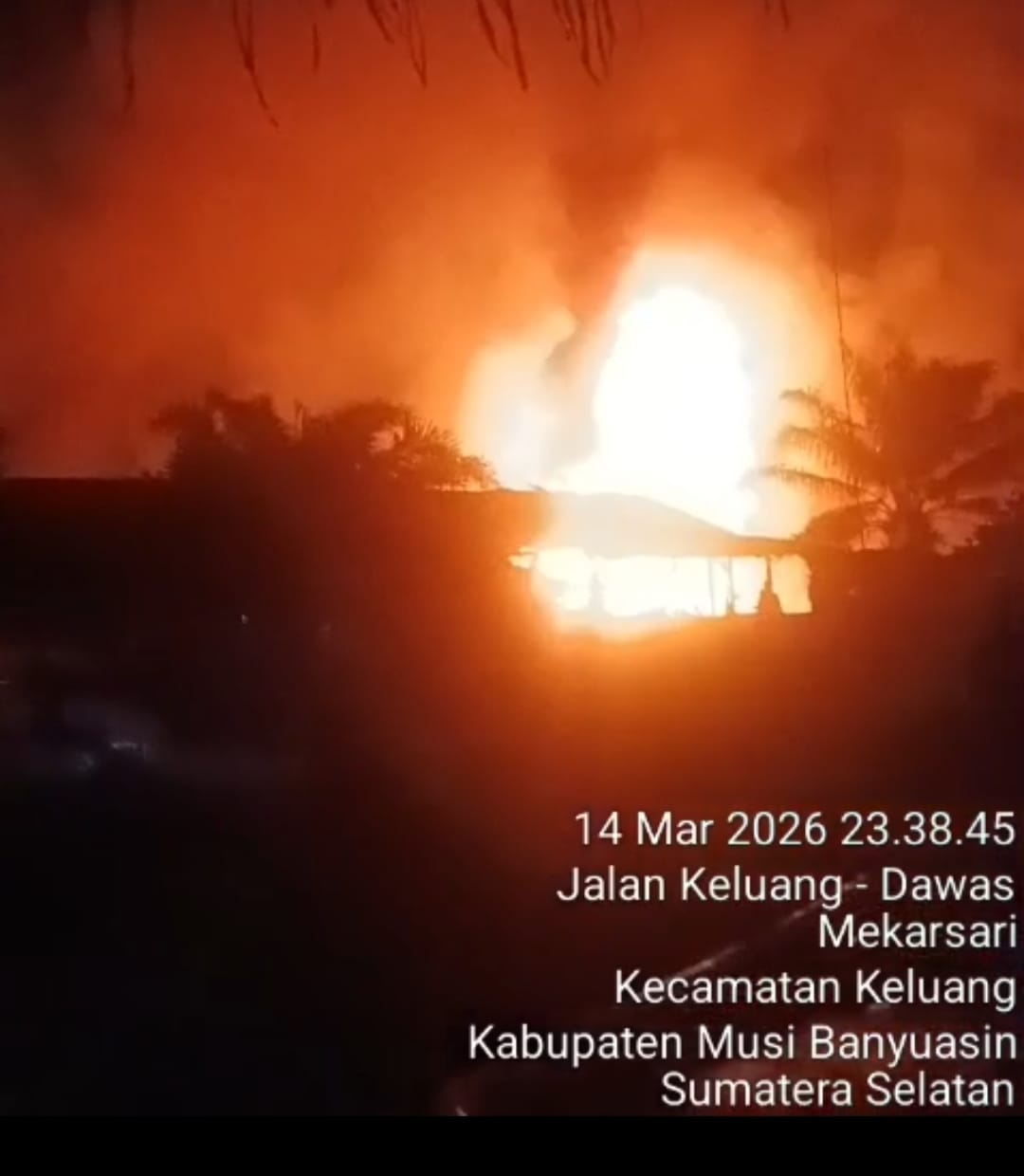 Kebakaran hebat yang terjadi pada Sabtu malam, 14 Maret 2026 sekitar pukul 23.38 WIB di wilayah Cawang, Desa Mekar Sari, Kecamatan Keluang, disebut-sebut berada di lokasi penyulingan minyak ilegal yang diduga milik seorang wanita berinisial YN, warga Kecamatan Sungai Lilin.
