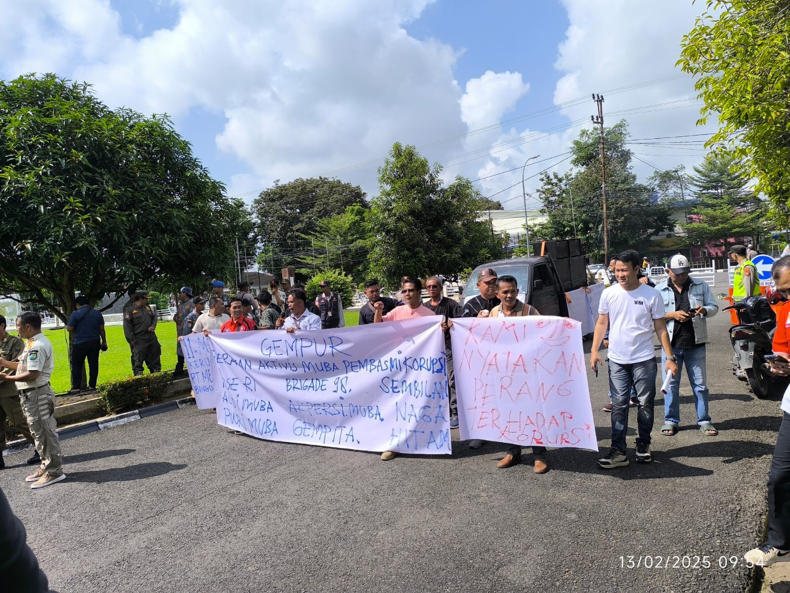 Sumsel.Manuver.co.id, Musi Banyuasin – Ratusan massa menamakan diri Gerakan Aktivis Muba Pembasmi Korupsi (Gempur) yang terdiri dari sembilan organisasi masyarakat, LSM, dan organisasi profesi pers, menggelar aksi unjuk rasa di Kantor Pemkab Muba dan Kantor Kejari Muba, Kamis (13/2/2025).