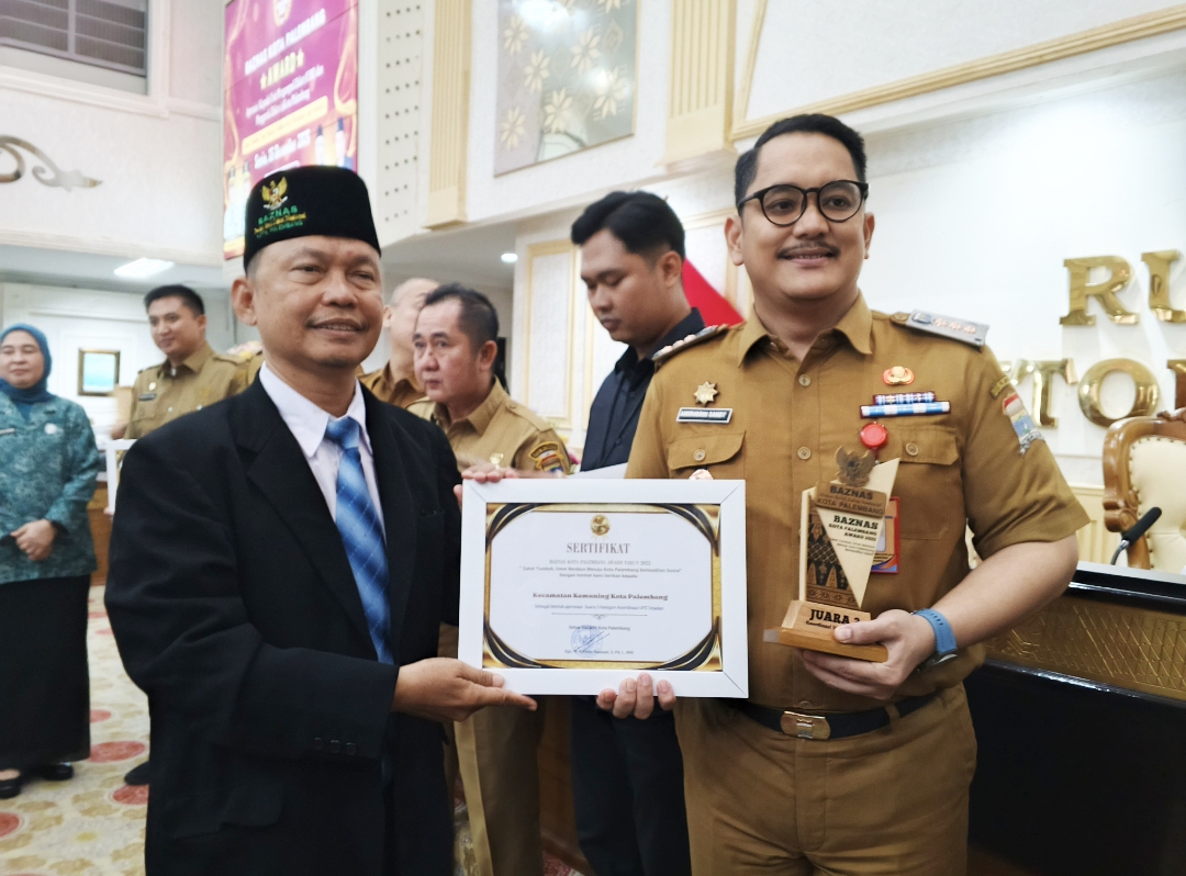 Sumsel.Manuver.co.id, Palembang – Camat Kemuning Dr. Amiruddin Sandy, S.STP., M.Si menerima penghargaan Juara III Kategori Unit Pengumpul Zakat (UPZ) Teladan Tingkat Kota Palembang Tahun 2025 dari Badan Amil Zakat Nasional (Baznas) Kota Palembang, pada Senin (15/12/2025).